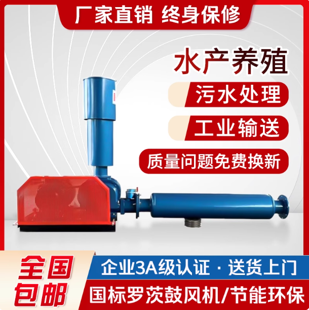 三叶罗茨风机鱼塘增氧机气力输送污水处理水产养殖曝气高压鼓风机