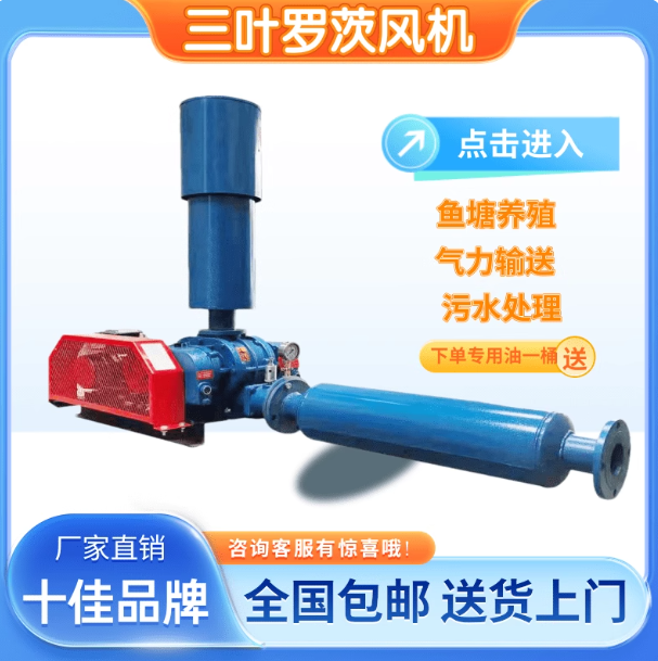 三叶罗茨风机鱼塘增氧机气力输送污水处理水产养殖曝气高压鼓风机