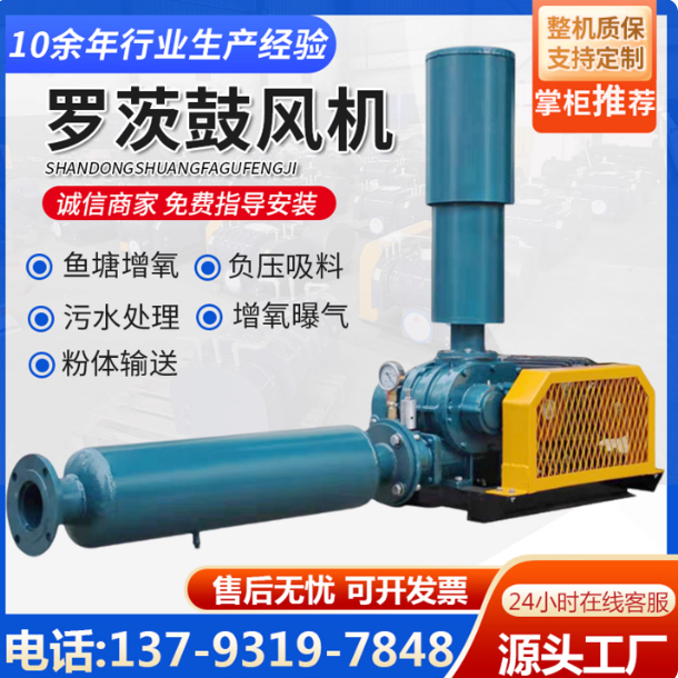 三叶罗茨风机鱼塘增氧机气力输送污水处理水产养殖曝气高压鼓风机