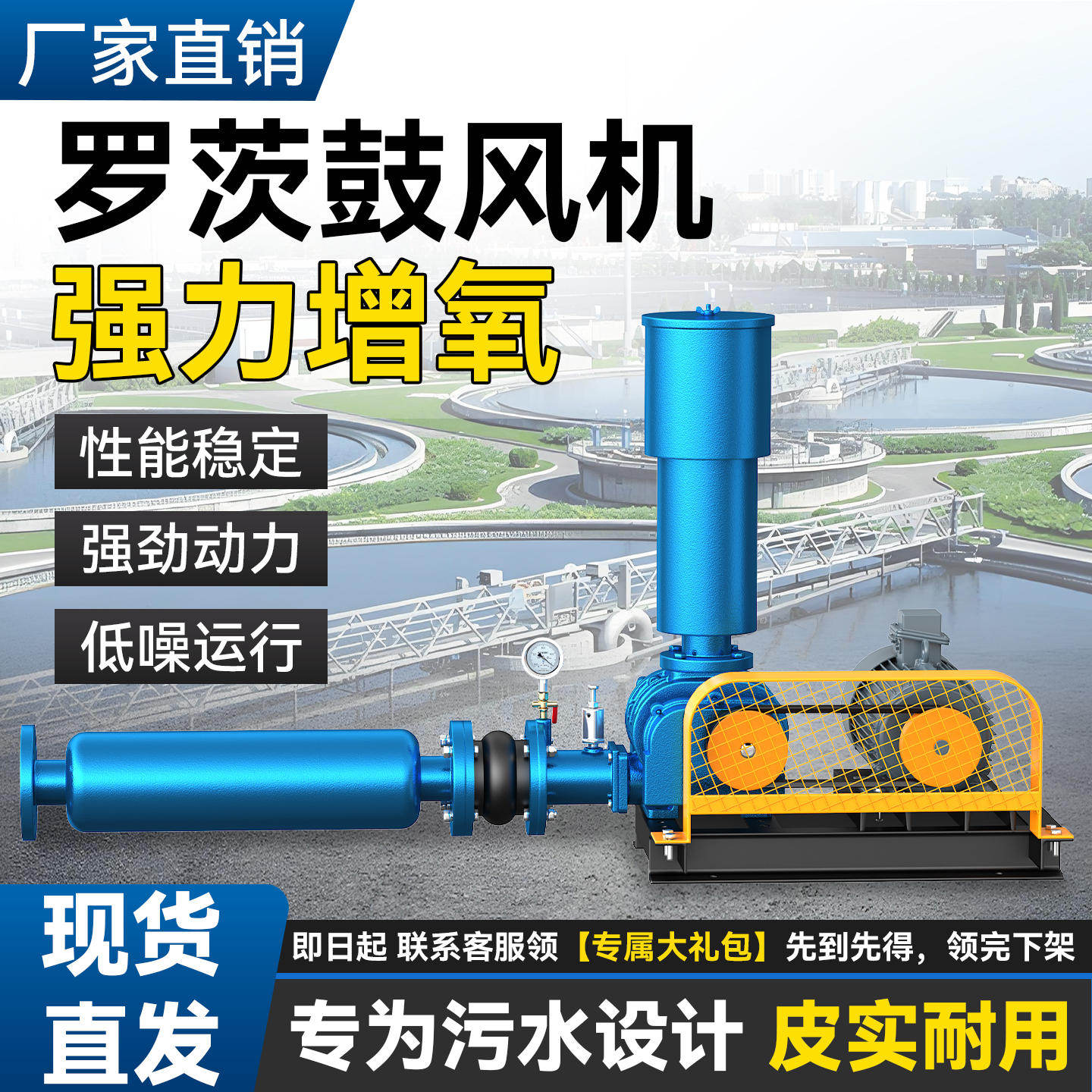 三叶罗茨风机鱼塘增氧机气力输送污水处理水产养殖曝气高压鼓风机
